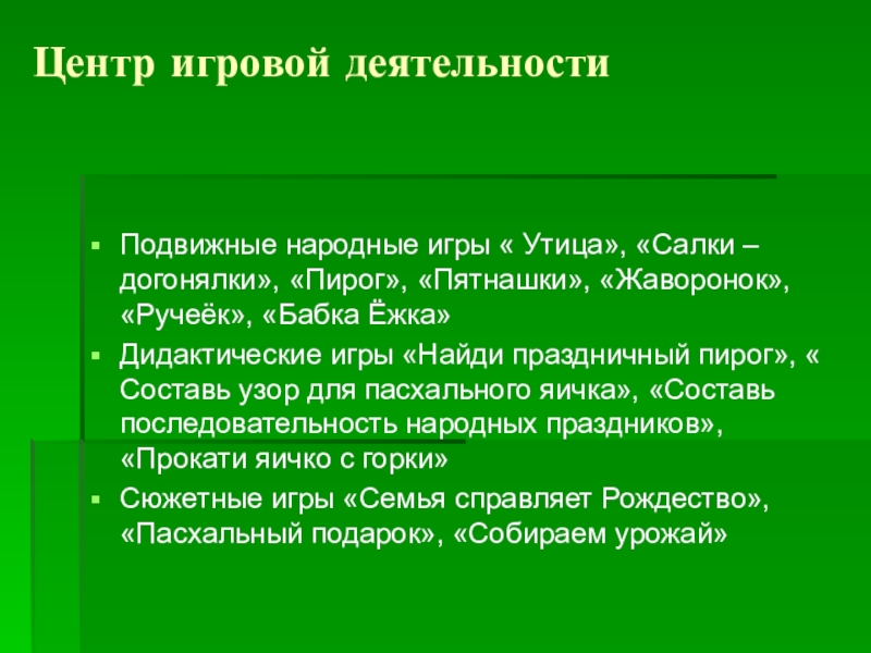 Слайд 10Центр игровой деятельности