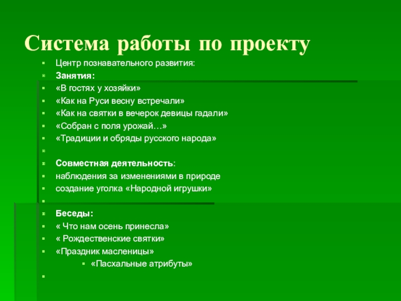 Слайд 9Система работы по проекту
