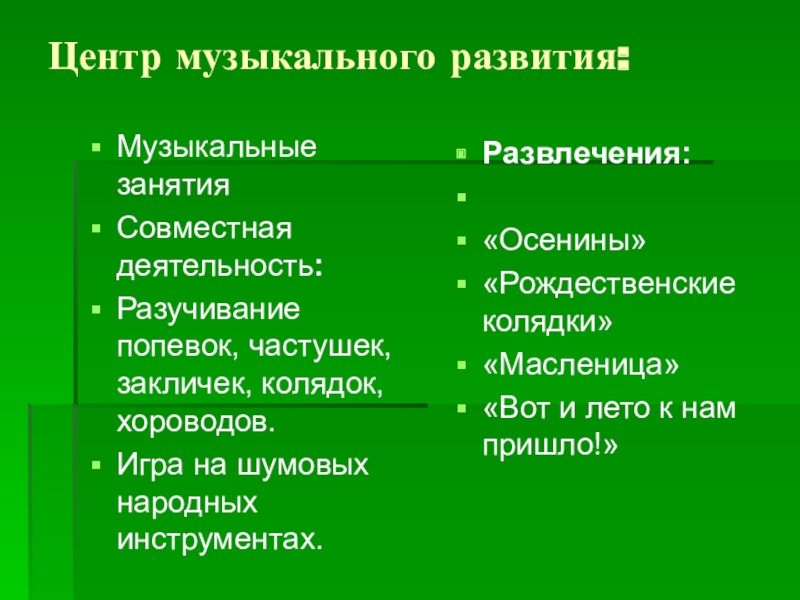 Слайд 13Центр музыкального развития: