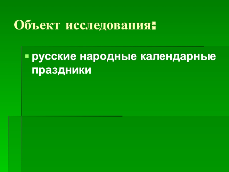 Познакомить детей с русскими календарными праздниками, которые отмечают в разные времена года: «Осенины», «Зимние святки», «Масленица», «Пасха»;