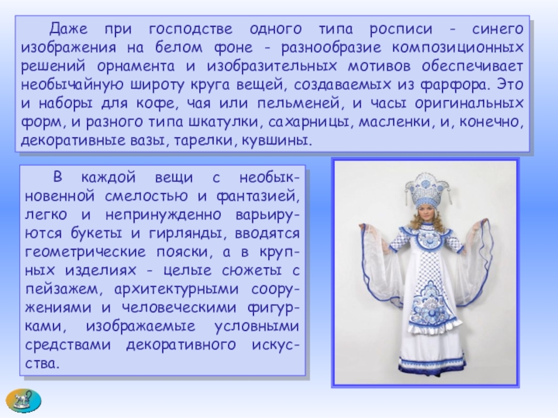 Слайд 42 Даже при господстве одного типа росписи - синего изображения на белом