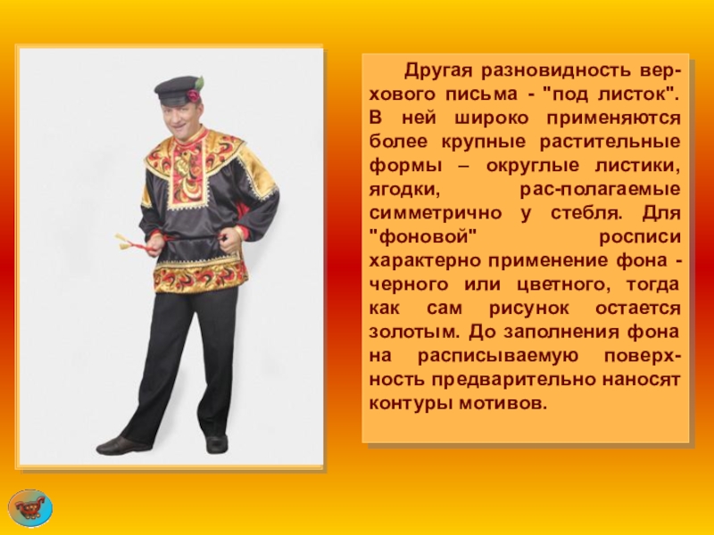 Слайд 52 Хохломской росписи свойственны два типа письма и тесно связанные с ними