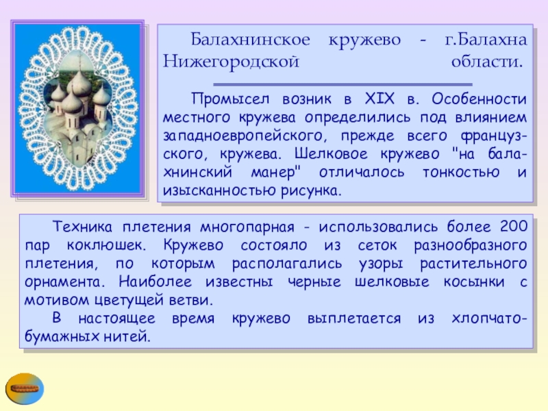 Слайд 16 Балахнинское кружево - г.Балахна Нижегородской области.