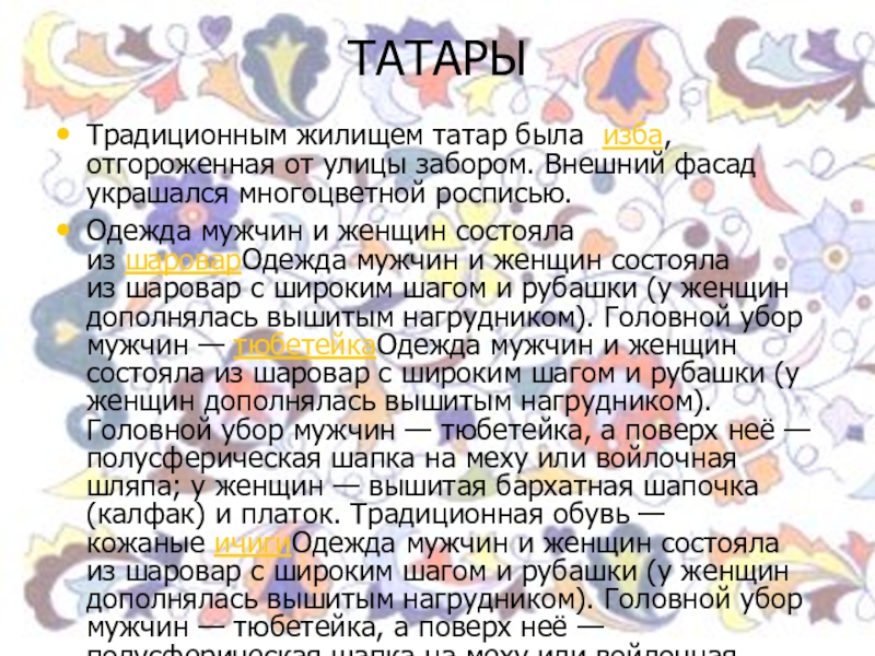 Слайд 11ТАТАРЫ