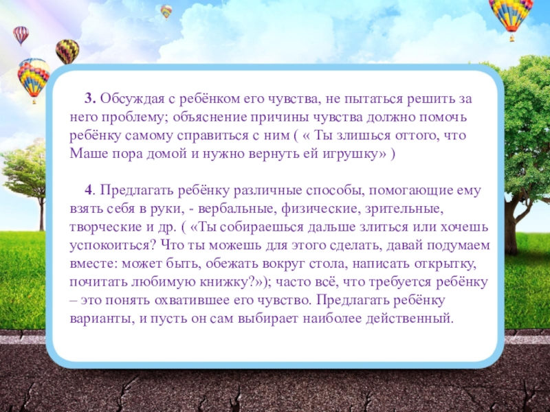 Слайд 11 3. Обсуждая с ребёнком его чувства, не пытаться решить