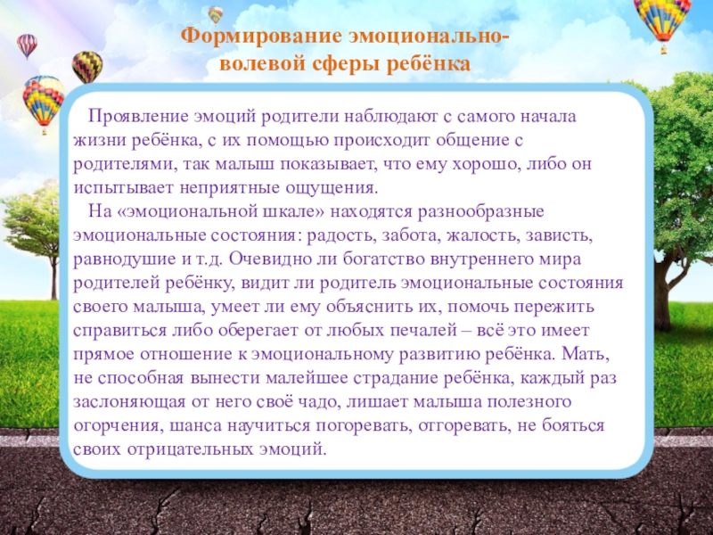 Слайд 9Формирование эмоционально-волевой сферы ребёнка