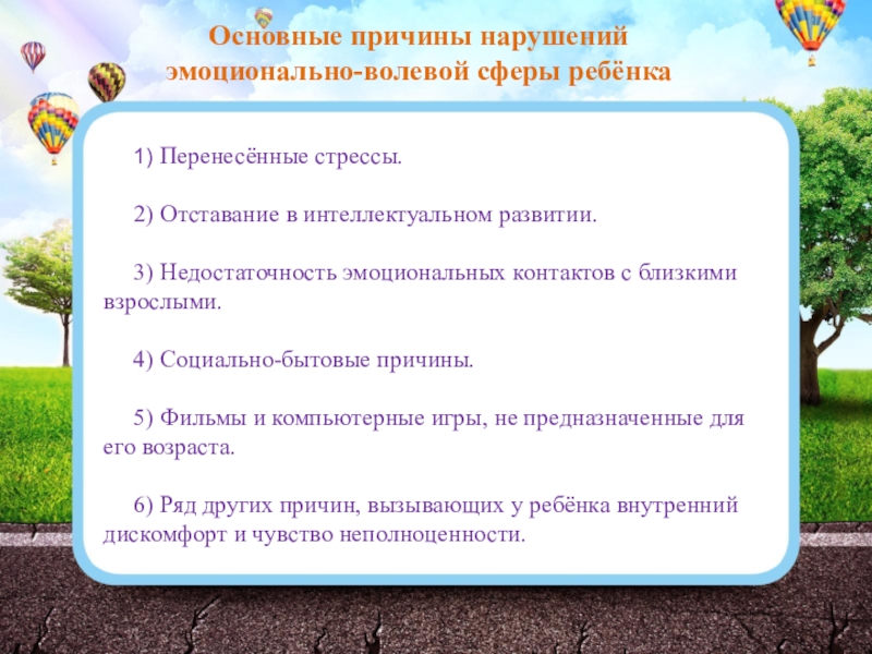 Слайд 13Основные причины нарушений эмоционально-волевой сферы ребёнка