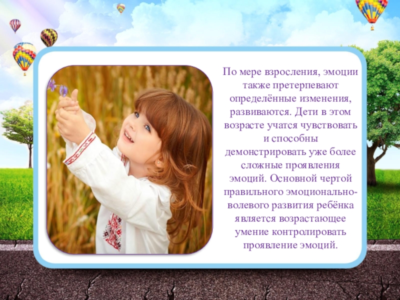 Слайд 12По мере взросления, эмоции также претерпевают определённые изменения, развиваются. Дети в