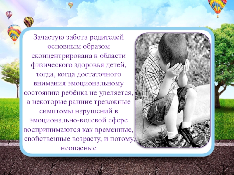 Слайд 3Зачастую забота родителей основным образом сконцентрирована в области физического здоровья детей,