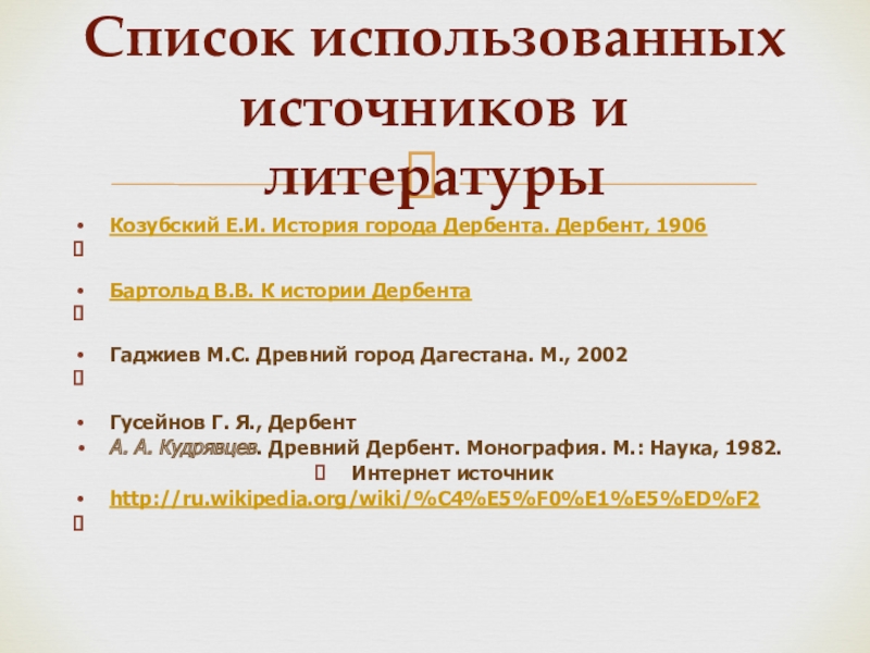 Список использованных источников и литературы
