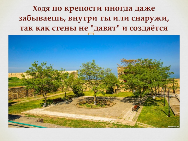 Ходя по крепости иногда даже забываешь, внутри ты или снаружи, так как стены не "давят" и создаётся ощущение простора.