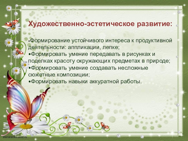 •Формирование устойчивого интереса к продуктивной деятельности: аппликации, лепке;