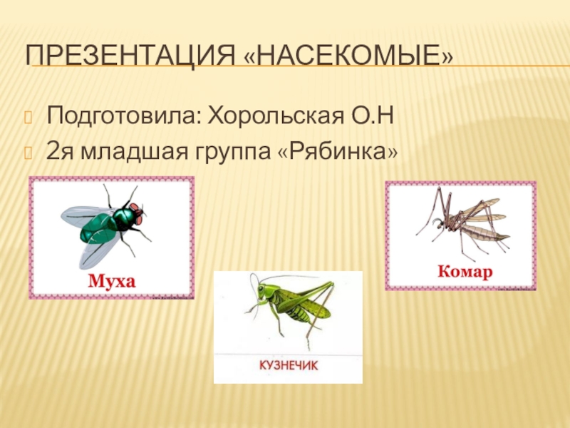 Презентация «Насекомые»Подготовила: Хорольская О.Н2я младшая группа «Рябинка»