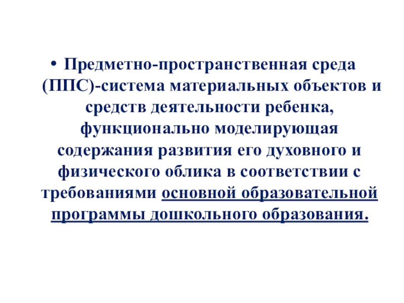 Слайд 2Предметно-пространственная среда (ППС)-система материальных объектов и средств деятельности ребенка, функционально моделирующая