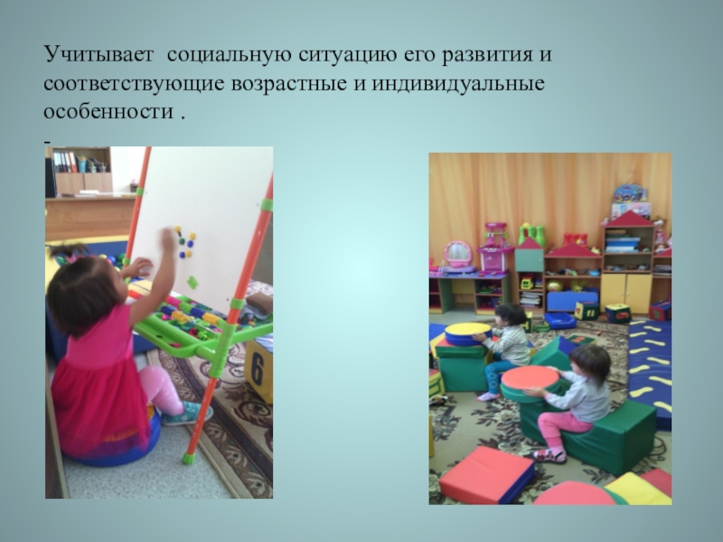 Учитывает социальную ситуацию его развития и