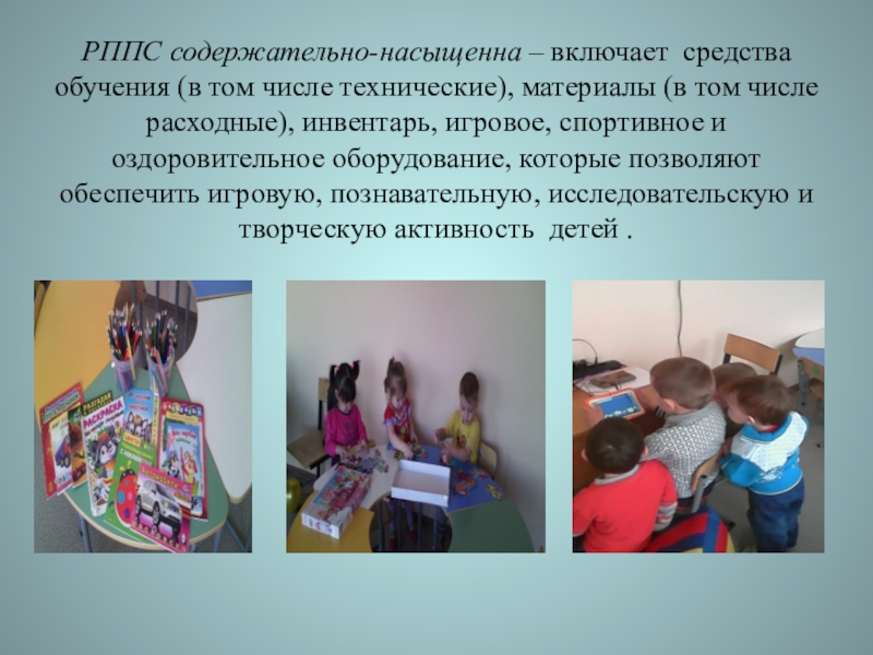 РППС содержательно-насыщенна – включает средства обучения (в том числе технические), материалы