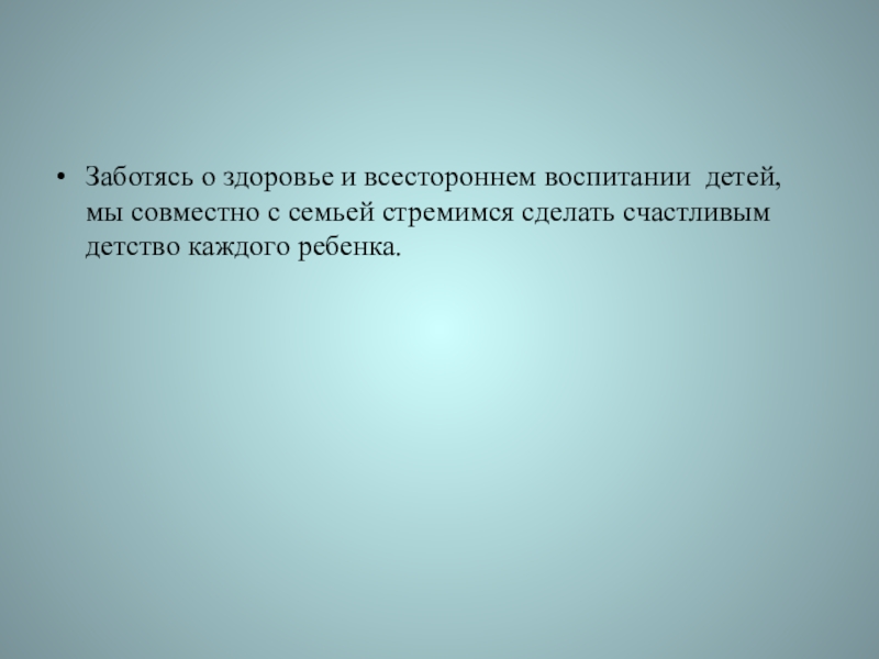 Слайд 20Заботясь о здоровье и всестороннем воспитании детей, мы совместно с семьей
