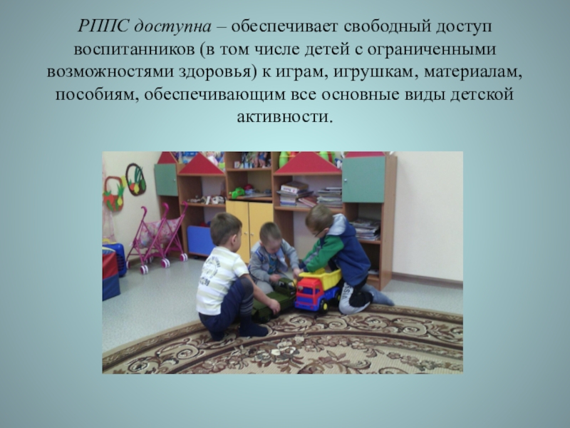 РППС доступна – обеспечивает свободный доступ воспитанников (в том числе детей