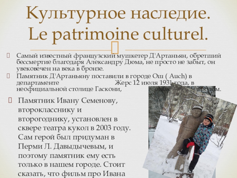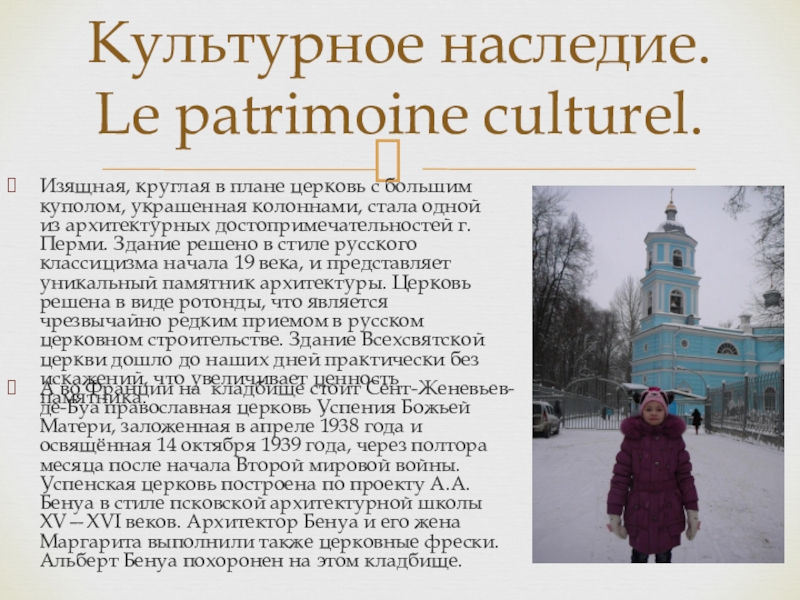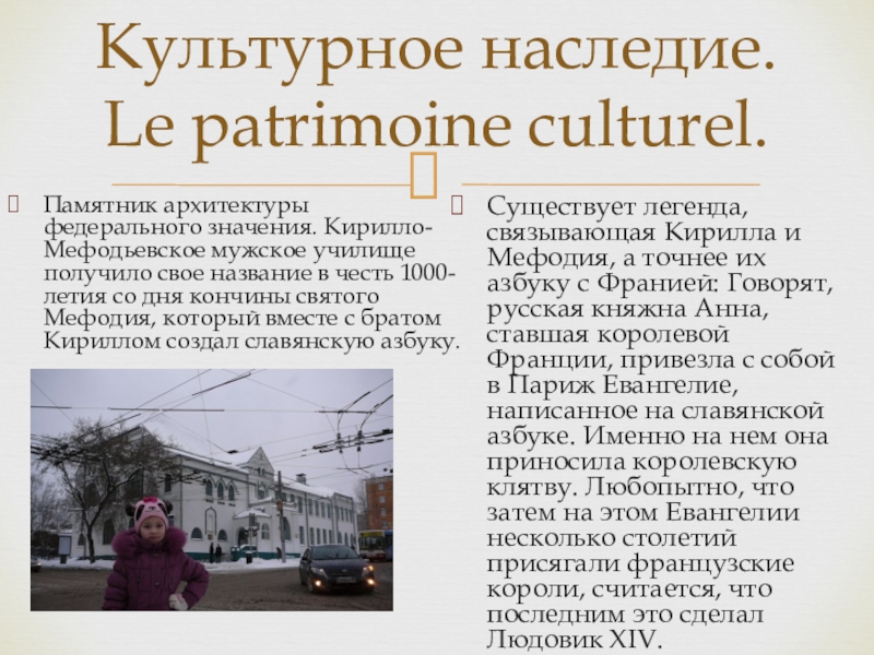 Слайд 12Культурное наследие. Le patrimoine culturel.
