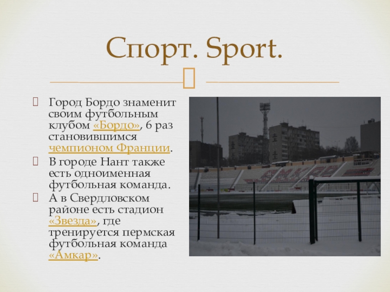 Город Бордо знаменит своим футбольным клубом «Бордо», 6 раз становившимся