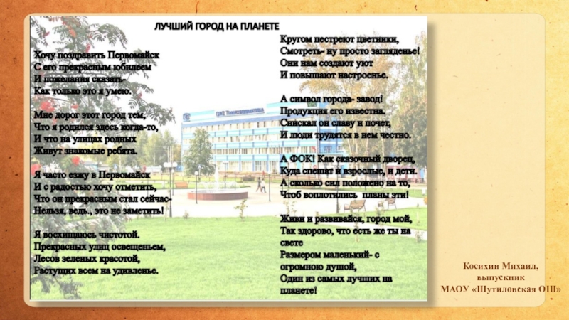 Это сайт презентаций, где можно хранить и обмениваться своими презентациями, докладами, проектами, шаблонами в формате PowerPoint с другими пользователями. Мы помогаем школьникам, студентам, учителям, преподавателям хранить и обмениваться учебными материалами.