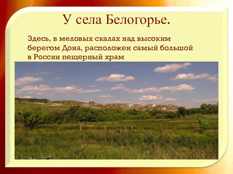 У села Белогорье. Здесь, в меловых скалах над высоким берегом Дона, расположен самый большой в России пещерный