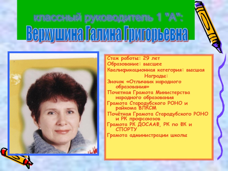 классный руководитель 1 "А":