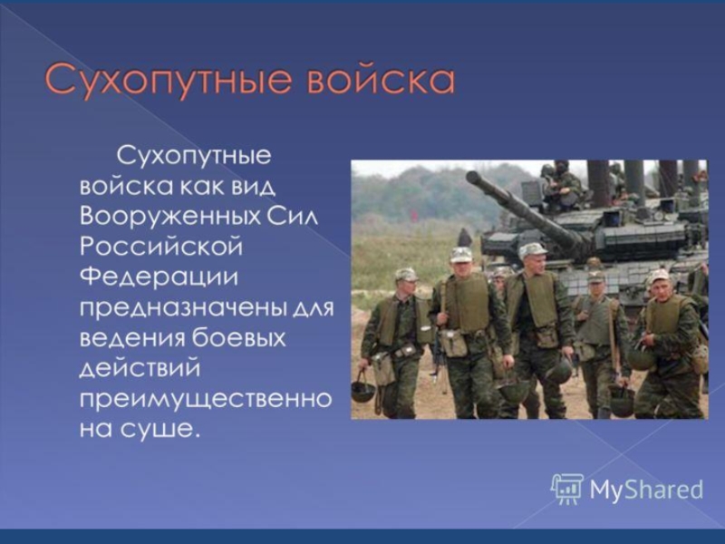 Слайд 10СУХОПУТНЫЕ ВОЙСКА