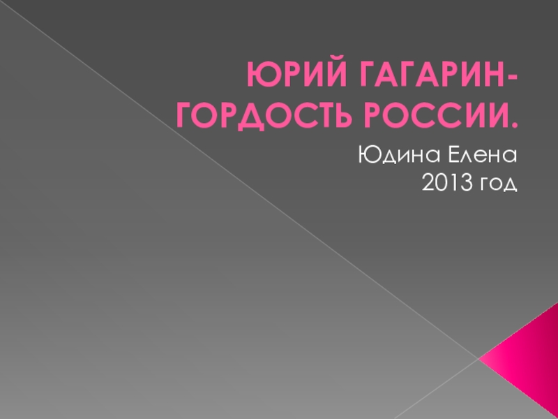 ЮРИЙ ГАГАРИН- ГОРДОСТЬ РОССИИ.Юдина Елена2013 год
