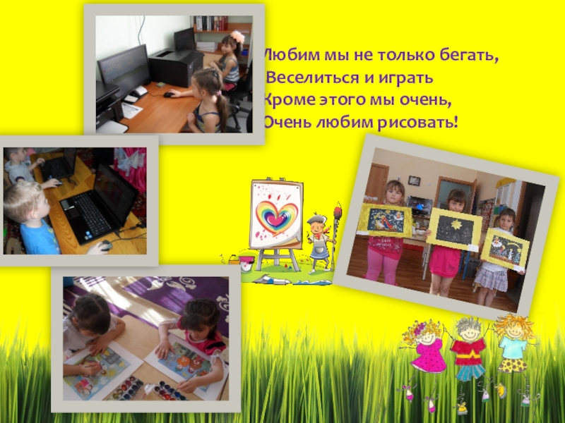 Любим мы не только бегать,  Веселиться и играть Кроме этого мы очень,  Очень любим рисовать!