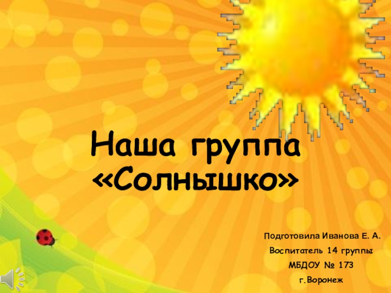 Наша группа «Солнышко» Подготовила Иванова Е. А.Воспитатель 14 группыМБДОУ № 173г.Воронеж