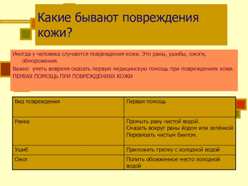 Важно уметь вовремя оказать первую медицинскую помощь при повреждениях кожи.