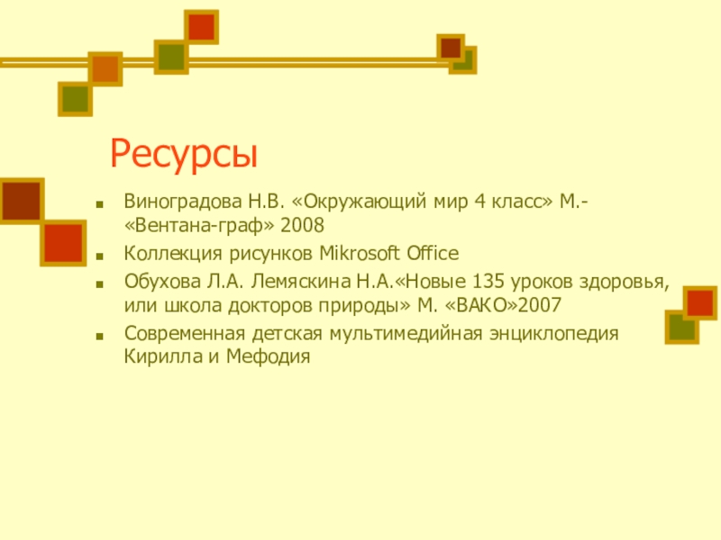 Обухова Л.А. Лемяскина Н.А.«Новые 135 уроков здоровья, или школа докторов природы» М. «ВАКО»2007
