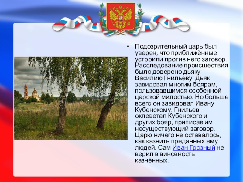 Слайд 6Подозрительный царь был уверен, что приближённые устроили против него заговор. Расследование