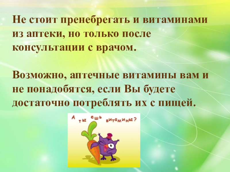 Не стоит пренебрегать и витаминами из аптеки, но только после консультации