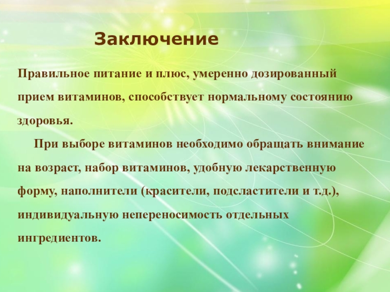 При выборе витаминов необходимо обращать внимание на возраст, набор витаминов, удобную лекарственную форму, наполнители (красители, подсластители и т.д.), индивидуальную непереносимость отдельных ингредиентов.