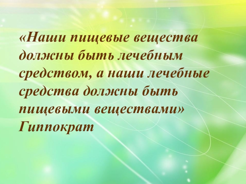 «Наши пищевые вещества должны быть лечебным средством, а наши лечебные средства