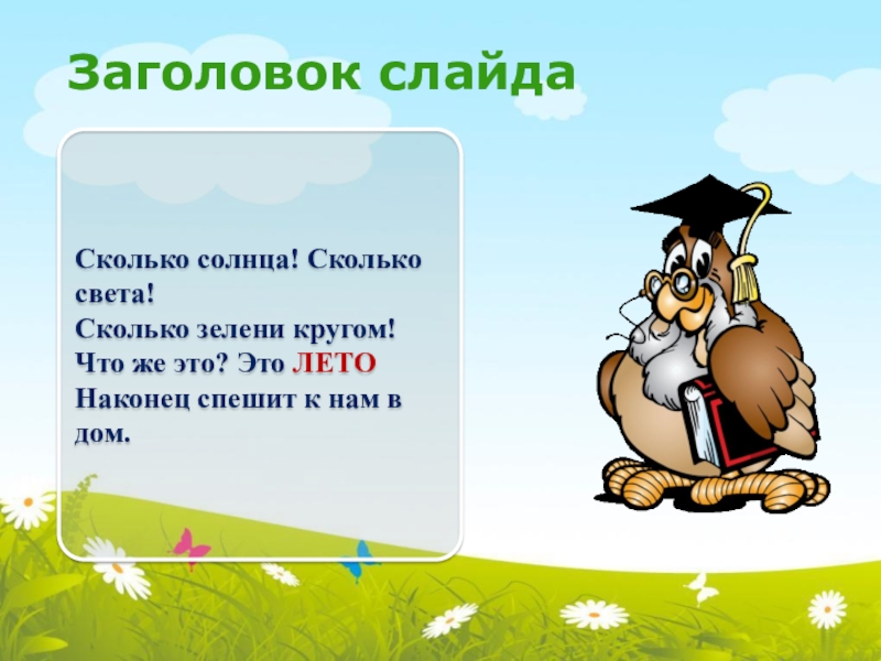 Это сайт презентаций, где можно хранить и обмениваться своими презентациями, докладами, проектами, шаблонами в формате PowerPoint с другими пользователями. Мы помогаем школьникам, студентам, учителям, преподавателям хранить и обмениваться учебными материалами.