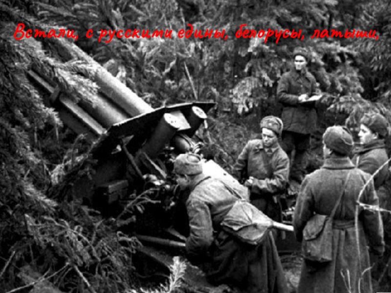 Слайд 5Встали, с русскими едины, белорусы, латыши,