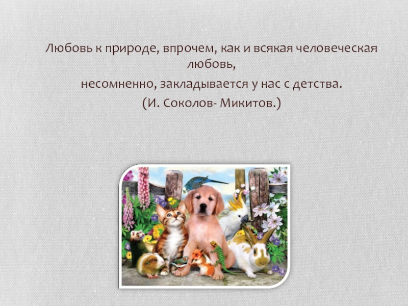 Слайд 2Любовь к природе, впрочем, как и всякая человеческая любовь,