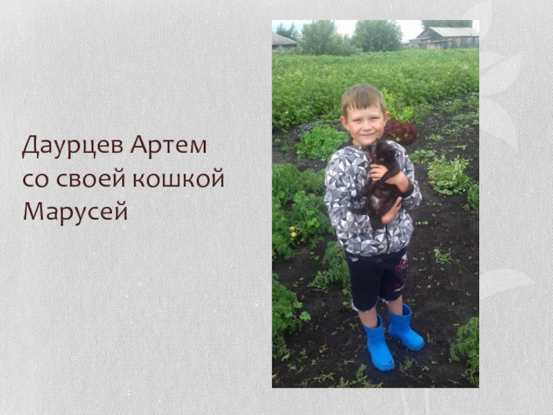 Слайд 11Даурцев Артем со своей кошкой Марусей
