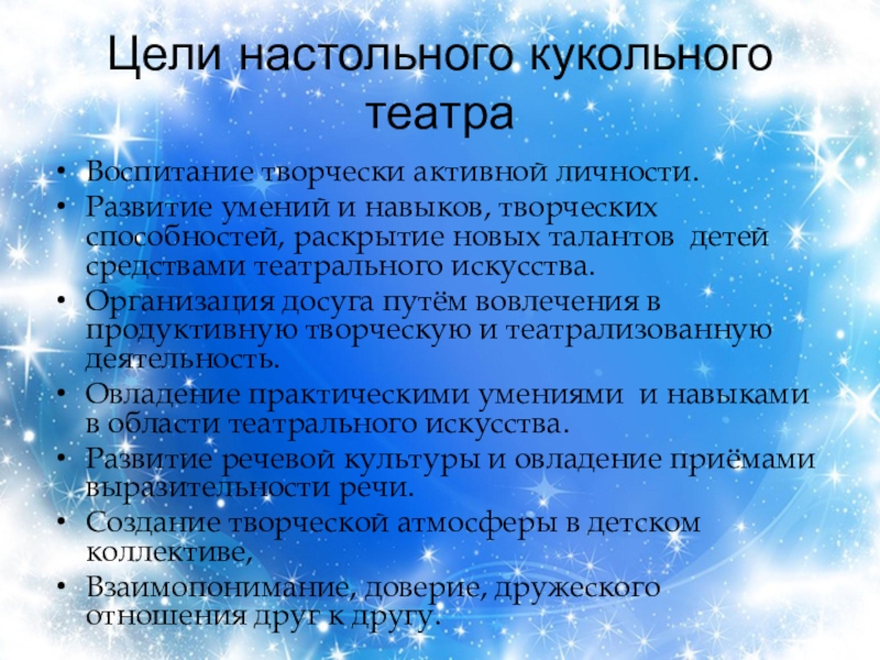 способностей, раскрытие новых талантов детей средствами театрального искусства.