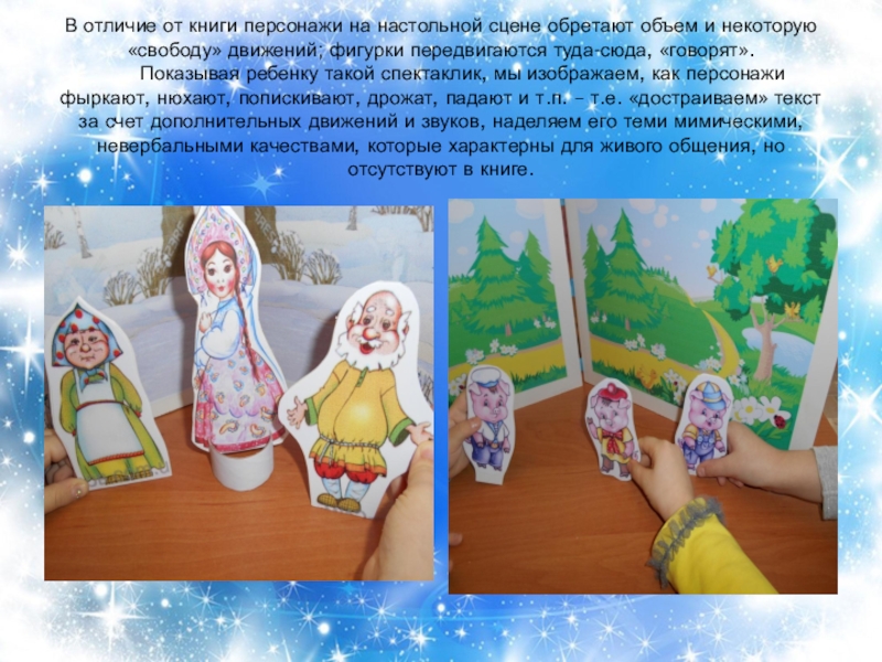 Слайд 12В отличие от книги персонажи на настольной сцене обретают объем и