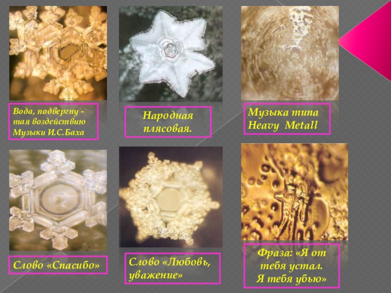 Воде перед заморозкой говорили разные слова на многих языках или воздействовали на нее музыкой.