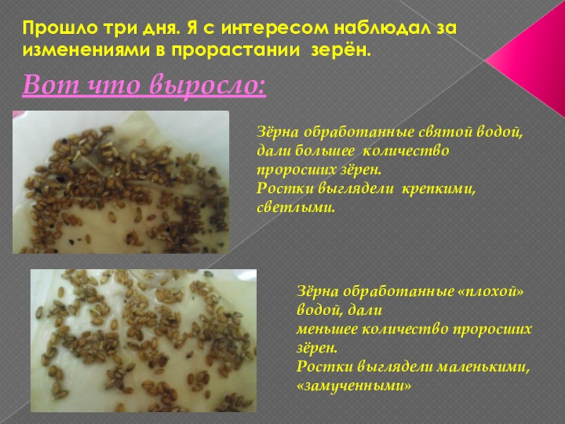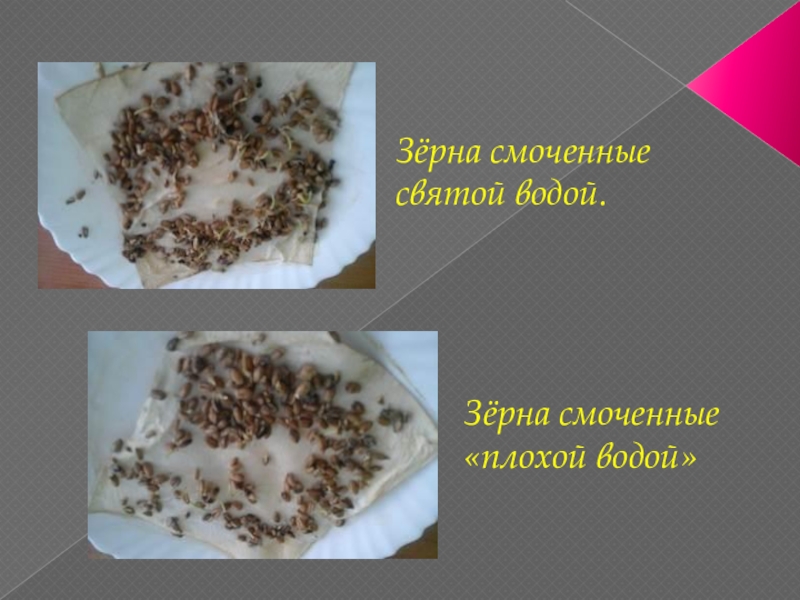 Зёрна обработанные святой водой, дали большее количество проросших зёрен.