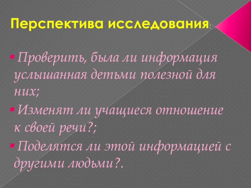 Перспектива исследования: