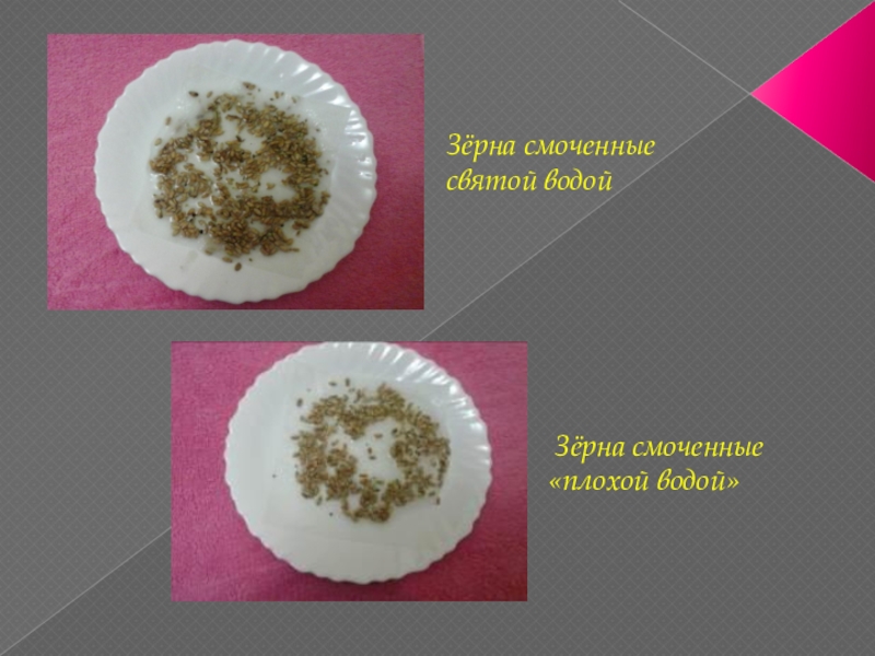 Слайд 23Зёрна смоченные святой водой.