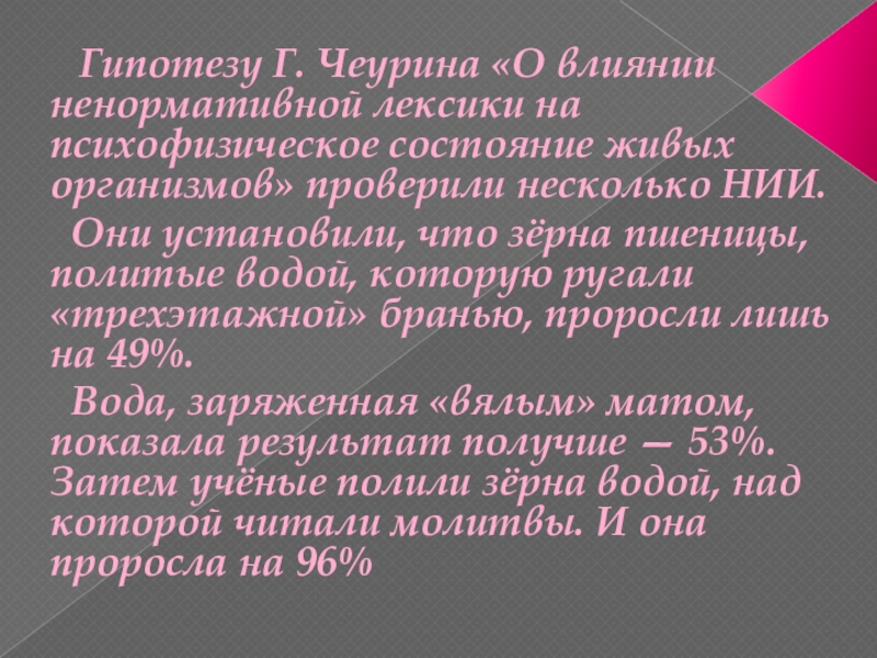 Слайд 18 Гипотезу Г. Чеурина «О влиянии ненормативной лексики на психофизическое