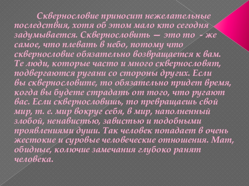 Слайд 26 Сквернословие приносит нежелательные последствия, хотя об этом