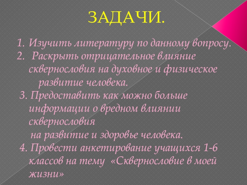 4. Провести анкетирование учащихся 1-6 классов на тему «Сквернословие в моей жизни»